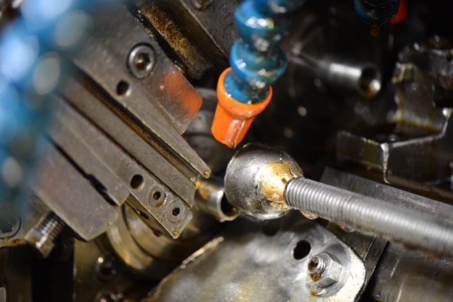 The 6-spindle New Britain is a multiple-spindle lathe. It operates in a counter-clockwise, indexing manner, starting in the No. 6 position where overall length is set and cutoff takes place. Moving into the No. 1 position, forming, turning, drilling and knee tooling is started. At No. 2, the main drilling is accomplished, along with additional box and knee tooling. At No. 3, more drilling takes place, along with finish form and recess work. Moving to No. 4, more drilling, knee tooling, forming, shaving, tapping, recessing and turning can take place. The No. 5 position offers the main threading work, OD/ID positioning and recess knurling.